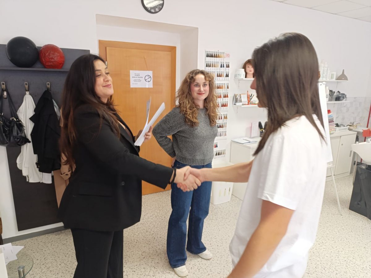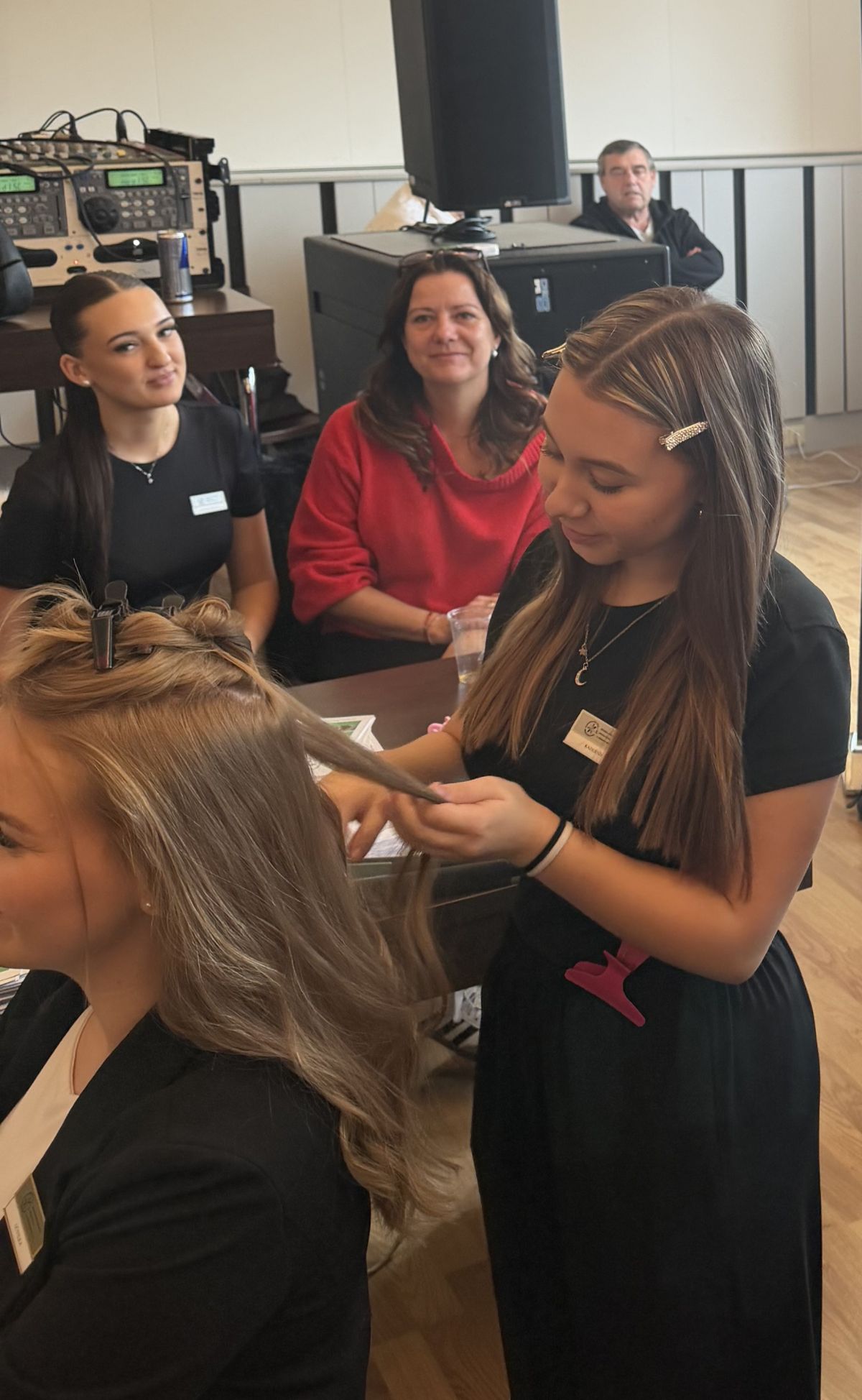 Dne 6. 11. 2025 proběhlo ve školním kadeřnickém salonu na Mírovém náměstí školení Prodlužování vlasů, kterého se zúčastnili žáci obou tříd 2. ročníku oboru Kadeřník.