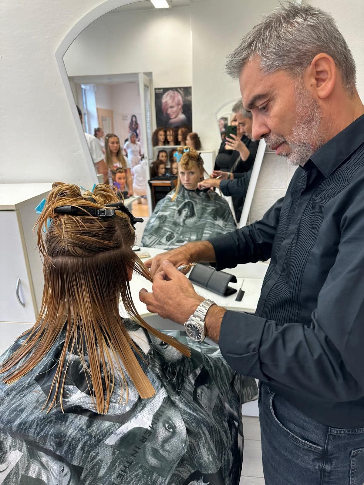 Během semináře pan Kotlár předvedl moderní techniky střihu na dlouhých vlasech, sdílel odborné rady a zkušenosti a pomáhal studentům zdokonalit jejich dovednosti při praktickém nácviku.