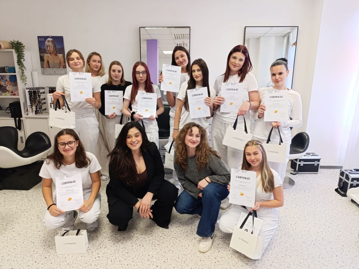 Kurzem provázely školitelky od firmy La Premiére Hair a předvedly techniku Prodlužování vlasů Tape in. Po celý kurz panovala příjemná a přátelská atmosféra, žáci byli velmi spokojeni a na závěr obdrželi certifikát.