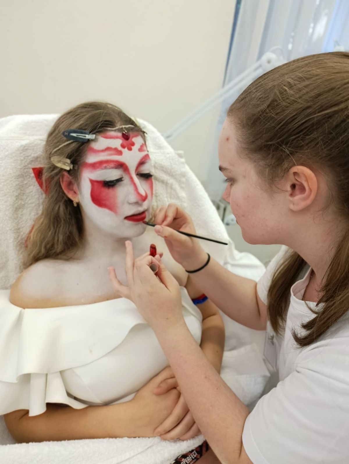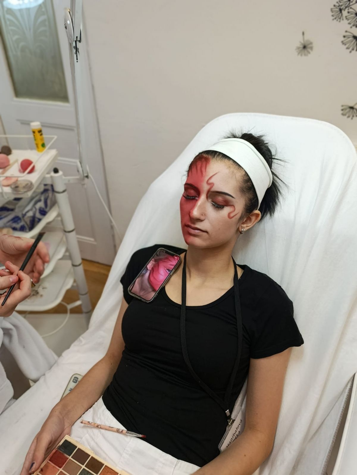 Kreativní líčení na stejné téma proběhlo také dne 2. 10. 2025 i ve 3. ročníku oboru Kosmetické služby. Nejlépe se umístily žákyně Markéta Mirovská, Anastasiia Vrublevská a Aniuta Bodnar.