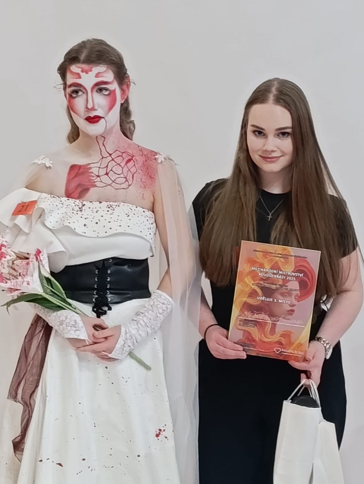 V kategirii FACEPAINTING získala Alena Nešněrová 3. místo, v kategorii ART MAKE-UP 4.- 6. místo Alisa Tuluc a v kategorii DÁMSKÝ EXTRAVAGANTNÍ ÚČES naši zástupci získali 12. místo (Marie Hejnová) a 15. místo (Pavlína Halušková). Všechny žákyně odvedly úžasnou práci a my jim děkujeme za reprezentaci naší školy a GRATULUJEME!