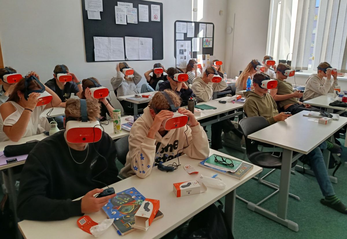 Žáci poprvé použili naši novou sadu VR brýlí přímo v hodinách biologie, geografie i hudebně pohybové výchovy — a ve třídách to vzbudilo zájem. Virtuálně se podívali do nitra svalu a sledovali jeho kontrakci, prošli se žílou, zkoumali fáze mitózy a stavbu buněk. Měli také příležitost ponořit se pod hladinu u korálových ostrovů nebo si prohlédnout hudební nástroje zblízka v prostorové 3D podobě či si vyzkoušet smyslovou místnost.