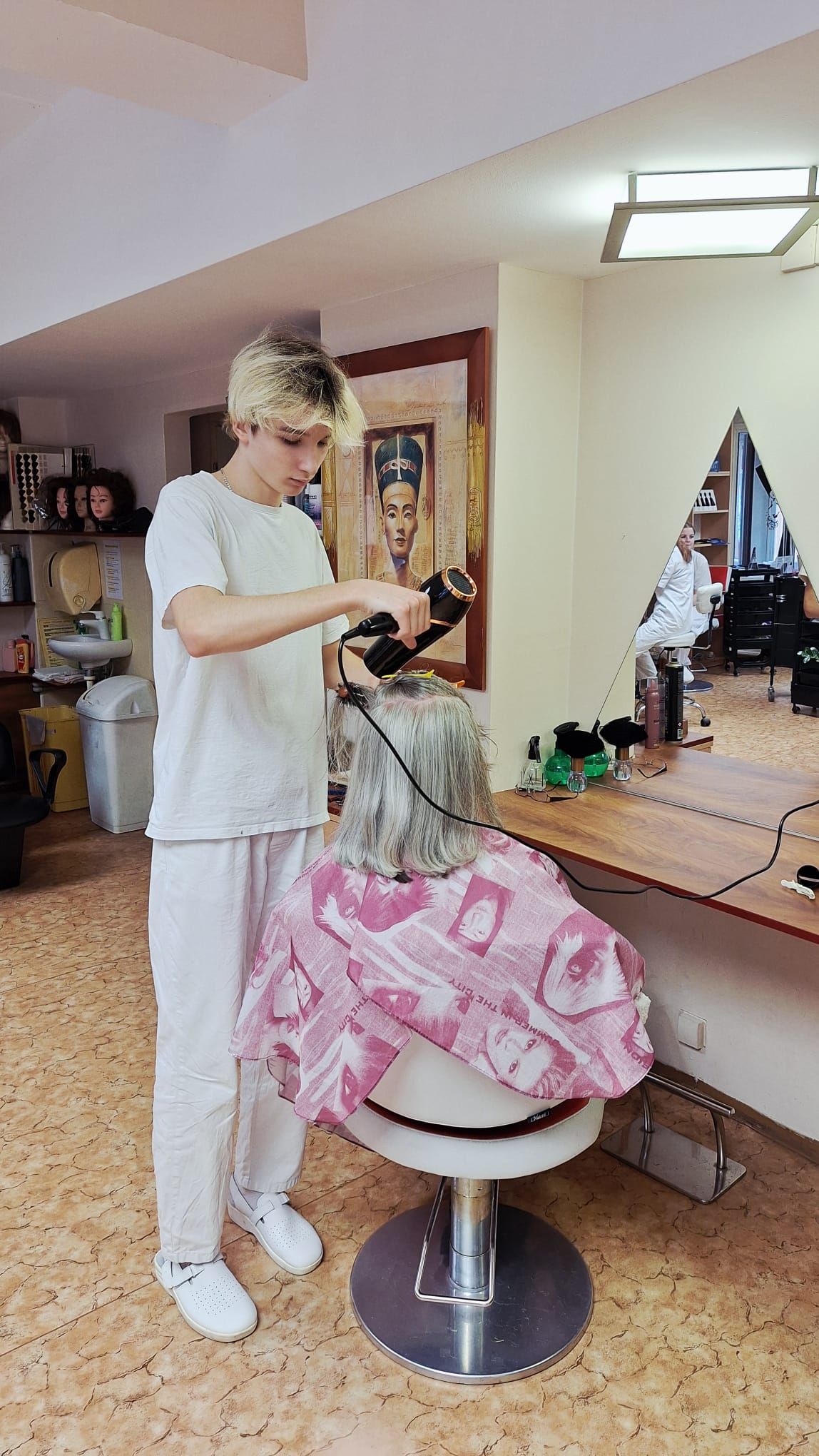 Během semináře pan Kotlár předvedl moderní techniky střihu na dlouhých vlasech, sdílel odborné rady a zkušenosti a pomáhal studentům zdokonalit jejich dovednosti při praktickém nácviku.