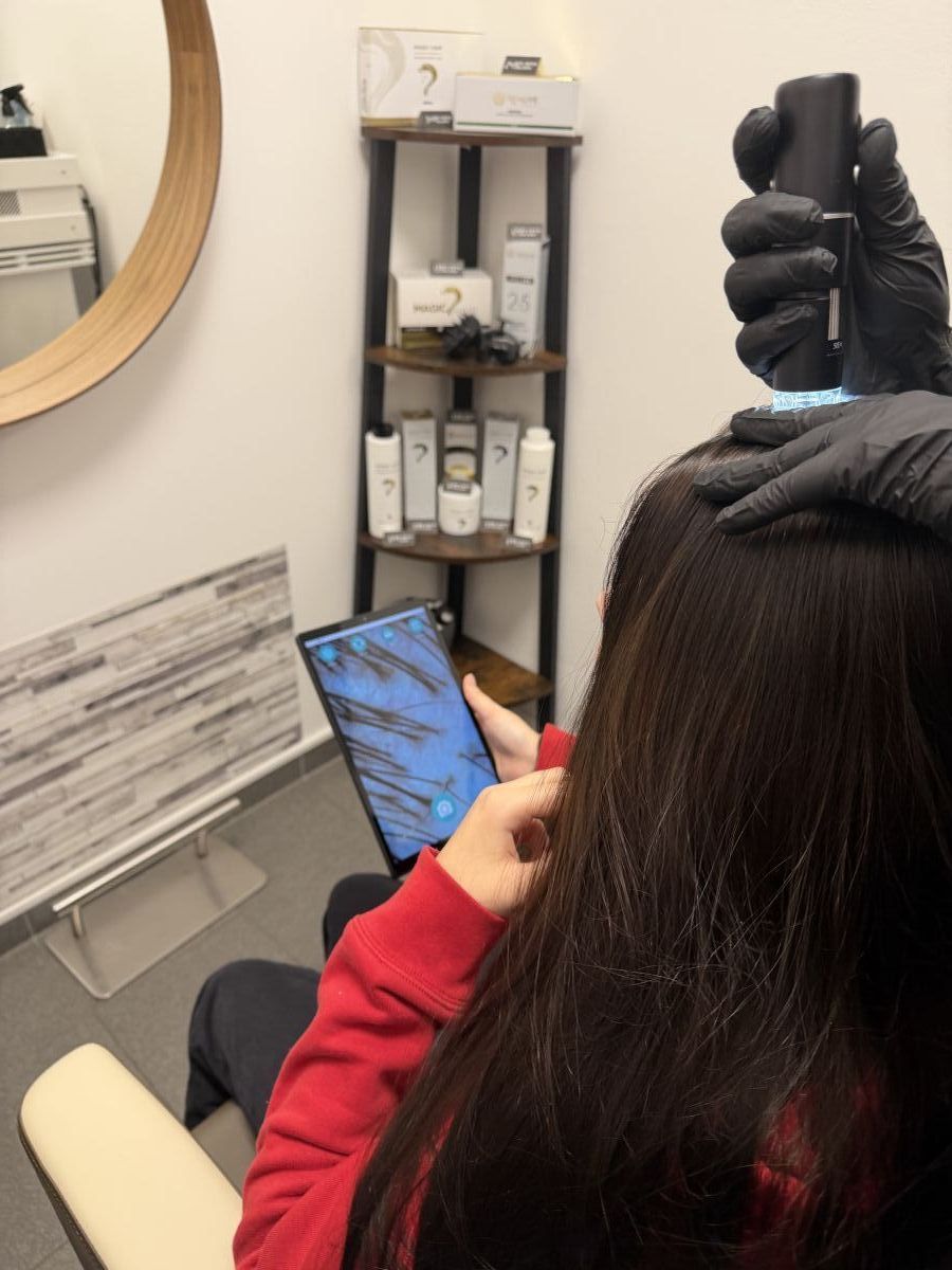 Bylo jim odprezentováno, že základním stavebním kamenem k úspěšnému vyřešení problému s vlasy je trichologické vyšetření, je to komplexní diagnostika vlasů a vlasové pokožky, která pomáhá odhalit příčinu různých problémů, jako je vypadávání vlasů, lupy, svědění, nadměrná mastnota, řídnutí vlasů, seborea, lupénka aj. Vyšetření vede vyškolený profesionál, který identifikuje kořenovou příčinu a navrhuje individuální řešení.